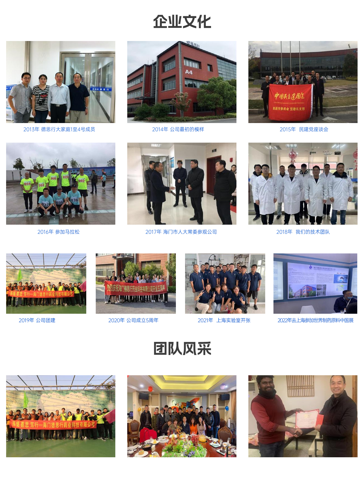 海門德思行藥業科技有限公司成立于2013年10月,位于海門臨江新區的海門科技園內。目前,注冊資本1000萬元人民幣,實驗室面積1052平米,裝備有先進的工藝及分析儀器,如夾套式反應釜,氣相/液相色譜,刮膜式分子蒸餾器等。公司由在外資藥企擔任高層管理崗位的技術專家及大學著名教授共同出資成立的,現有團隊包括多位有著十多年豐富工作經驗的博士、工藝開發研究員、質量分析研究員。
